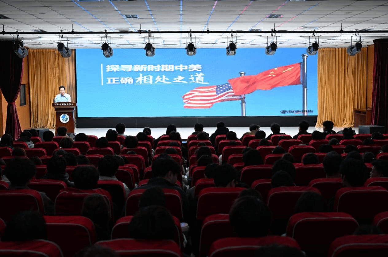 李广慧以《探寻新时期中美正确相处之道》为题,结合当前国际形势与高职学生的成长维度,深入浅出地阐述了中美关系的历史、现状与未来发展方向。他以国际比较的视角列举了多个国家发展的典型案例,通过自身在国内外访问所见所闻所感,引导学生认识中美关系是世界上最重要的双边关系之一,让学生了解如何相处这个问题既关乎两国人民福祉,也关乎世界前途命运。他强调,相互尊重是前提,和平共处是底线,合作共赢是目标,中美合作可以办成很多大事,解决好中美关系这道必答题。