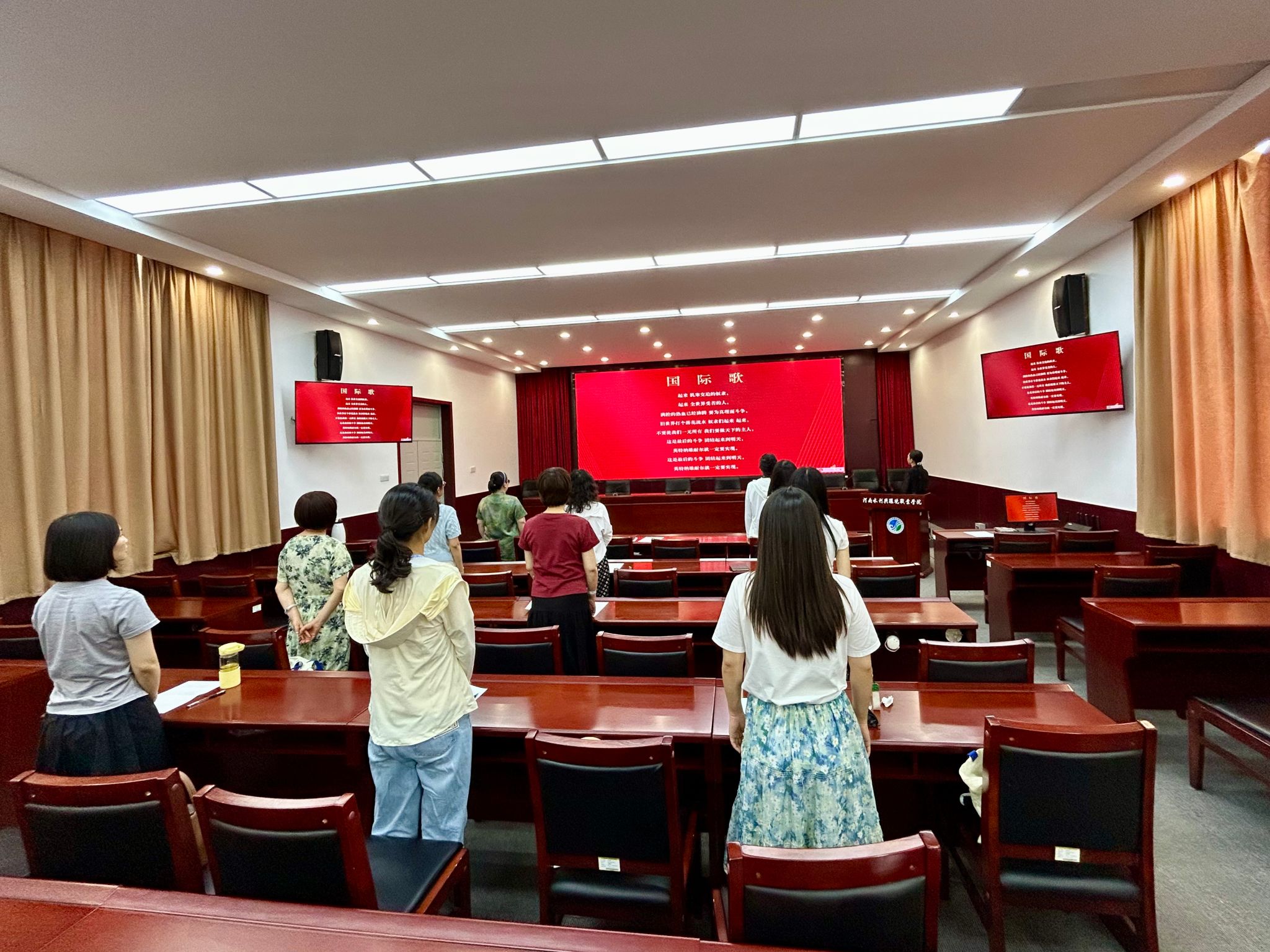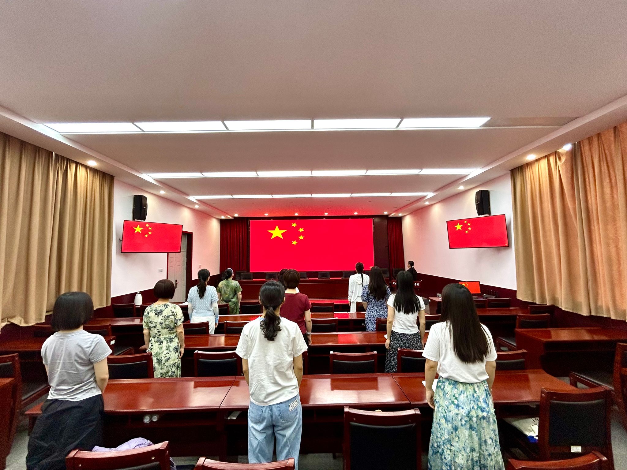 活动伊始,全体党员肃穆而立,在奏唱嘹亮的国歌声中拉开了活动的序幕。随后,郝思惠带领大家一起重温了入党誓词,铿锵有力的誓言在报告厅回荡,每一字都饱含着我们对党的忠诚与为共产主义事业奋斗终生的坚定决心。